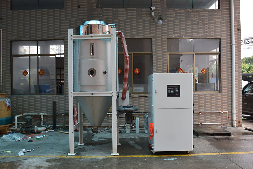 4.保溫式干燥料桶采用下吹風管設計,搭配旋風排氣裝置,防止熱能散失,確保溫度,提高干燥效率;