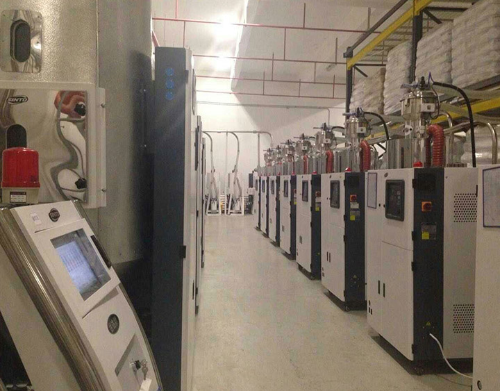 中央供料系統(tǒng)采用原料集中儲存和管理,使得原料區(qū)與成型區(qū)完全分開,操作空間大。