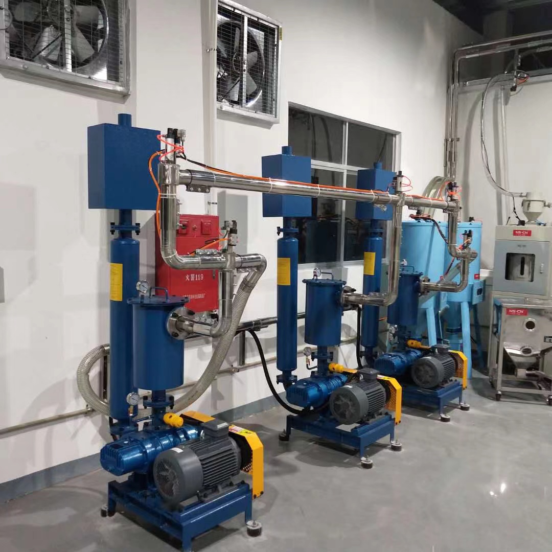 塑料中央供料系統(tǒng)解決原料重復(fù)人工搬運的高成本及因疏忽而產(chǎn)生干燥不完全的缺料問題,更不會混入不被允許的其它材料,重要的是降低采購、耗電、維修成本,提高產(chǎn)品質(zhì)量,提高工作效率。它是一種借助于真空吸力或吹力來傳送顆粒和粉末狀物料的無塵密閉管道輸送設(shè)備,利用真空與環(huán)境空間的氣壓差,形成管道內(nèi)氣體流動,帶動顆粒運動,從而完成原料的輸送。